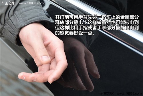 在開車前洗手,或者把手放在墻上抹一下也可以消除靜電。當然如果您受到條件所限時,也可以用手在車上拍一下放完電后再開車門,相比手指接觸汽車表面,雙手直接附上去可擴大接觸面積,減弱放電時帶來的不適感。