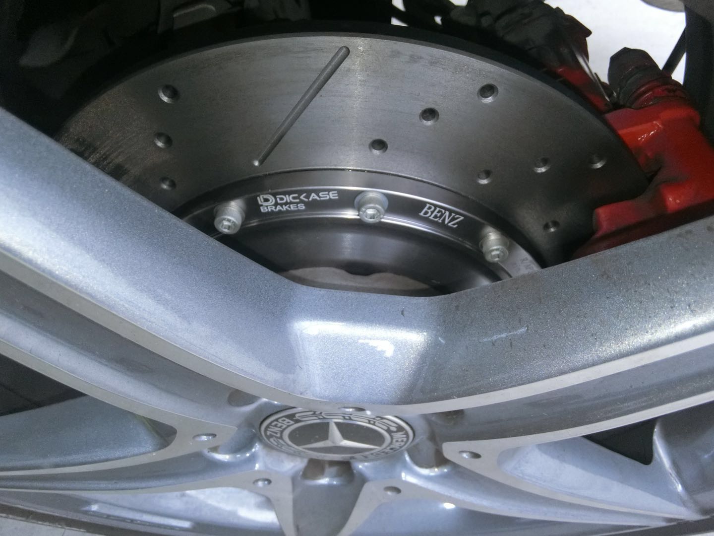 AMG卡鉗的改裝的標志象征著性能的升級,小小的改動,大大的提升,AMG奔馳的尊享身份不滿足于此,或是為了完整度,車主又打算在這輛車的基礎上直裝330mm的加大盤打孔加劃線的剎車盤。