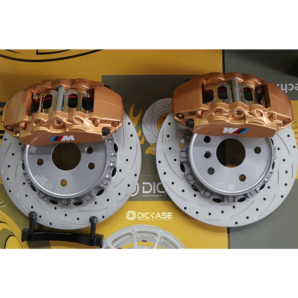 多大的輪轂裝多大的剎車,17寸咱就給它裝DICASE D41四活塞卡鉗搭配330*28打孔劃線盤,外加定制logo和改漆。對于小型家用轎車來說四活塞就足夠了,沒有必要去最求更好的六活塞、10活塞。