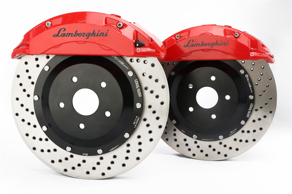 蘭博基尼卡鉗搭配上了打孔剎車盤,看起來外觀精美無暇,處處細節流露出雄健強勁的力量之感。